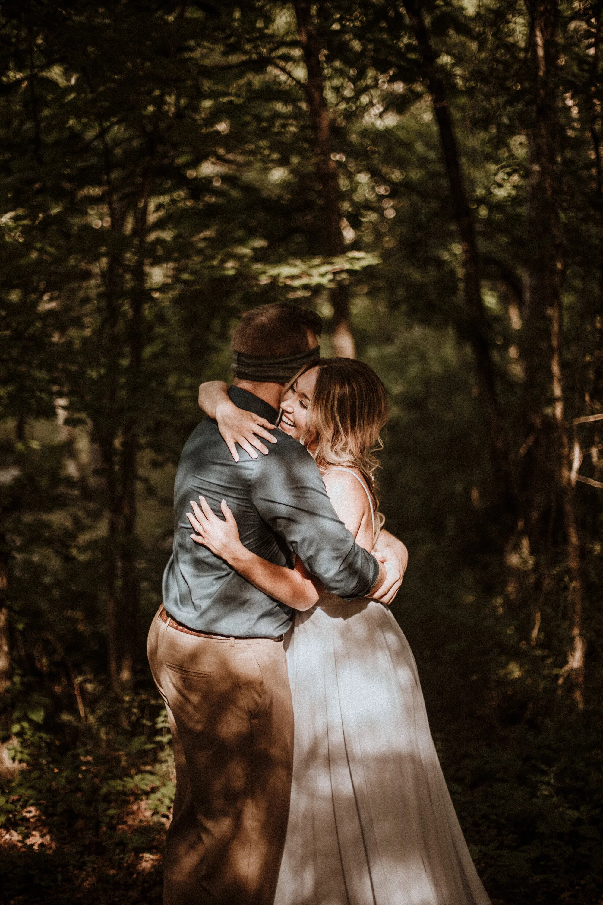 The whole day was thrown together so last minute, yet everything came together so perfectly. The morning was slow and peaceful, as we made our way up to a tiny cabin tucked back in Hocking County, Ohio. The bride and groom got ready in two different rooms of the three room cabin, while their families prepped food in the third. A short little walk from the cabin out into the woods took us to the spot we chose for the ceremony. Cody & Shawnacy took a moment to pray together before they walked down the aisle and said their vows. After the ceremony, we ate some food, cut the cake and then headed out to go run around for pictures. God painted a sunset just for Cody & Shawnacy over a gorgeous field and we ran off into the dark. The night ended with twinkle lights strung in the woods. Right where the couple said their vows, they shared a first dance under the stars.